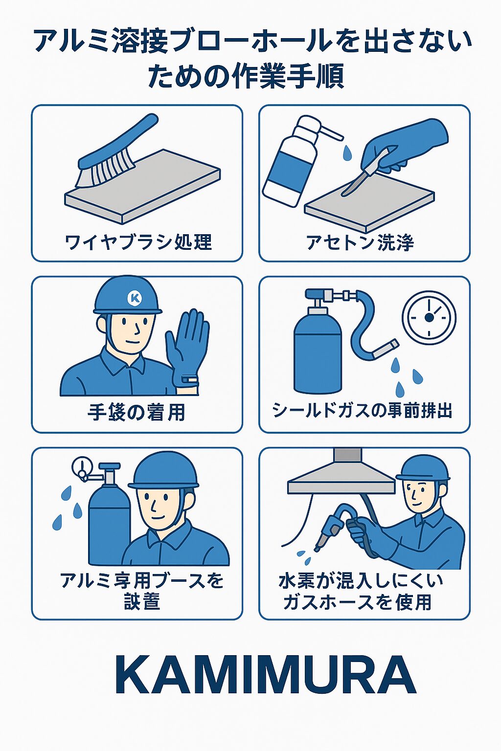 aluminum-welding-blowhole-checklist-kamimura-final.png 2025.09.15 この記事のタイトルとURLをコピーする ブローホールを防ぐための基本工程をわかりやすくまとめたKAMIMURA公式作業手順イラスト。現場教育や記事装飾に最適。 Post Share Line RSS Pin it note 投稿者: kamimura-web コメント: 0